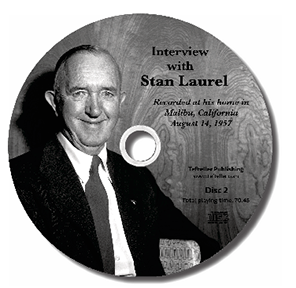 There are two audio CD's containing over 95 minutes of super rare audio, including, for the very first time, a brand-new, never before heard or known of 2nd 1944 NBC Radio audition, "No Dumber Plumbers." Also included is a long-thought lost hour-long interview with Stan Laurel in a private, candid conversation that he had no idea was being recorded.