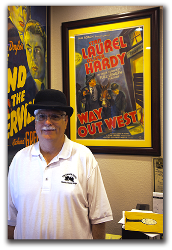 One of his other passions is collecting Laurel & Hardy memorabilia, which started even earlier, in 1967 — at the tender age of eight. (Pictured above is John in front of the only known copy of the original one-sheet poster for Way Out West.)